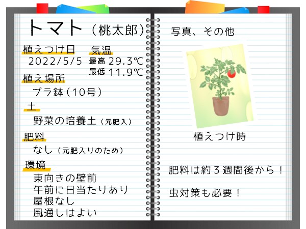 トマトを鉢で植えつけた時を
