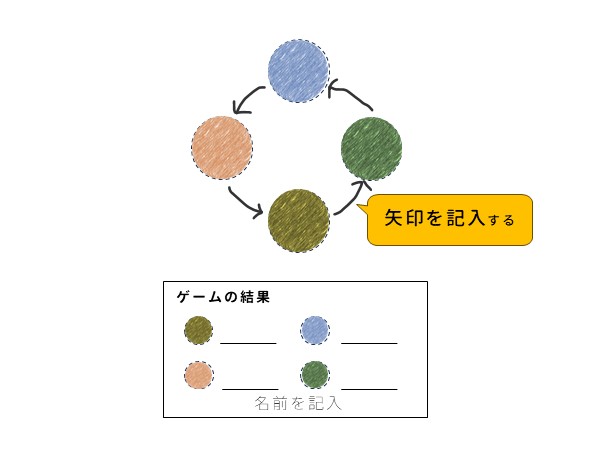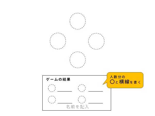 1、紙の上側に人数分の〇を書く